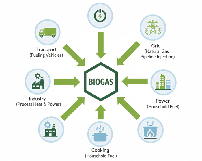 Across Europe, biogas is used for **grid injection**, **electricity generation**, **district heating**, and **transportation fuel**. Countries provide strong policy frameworks, education programs, and technology support to accelerate renewable gas adoption.