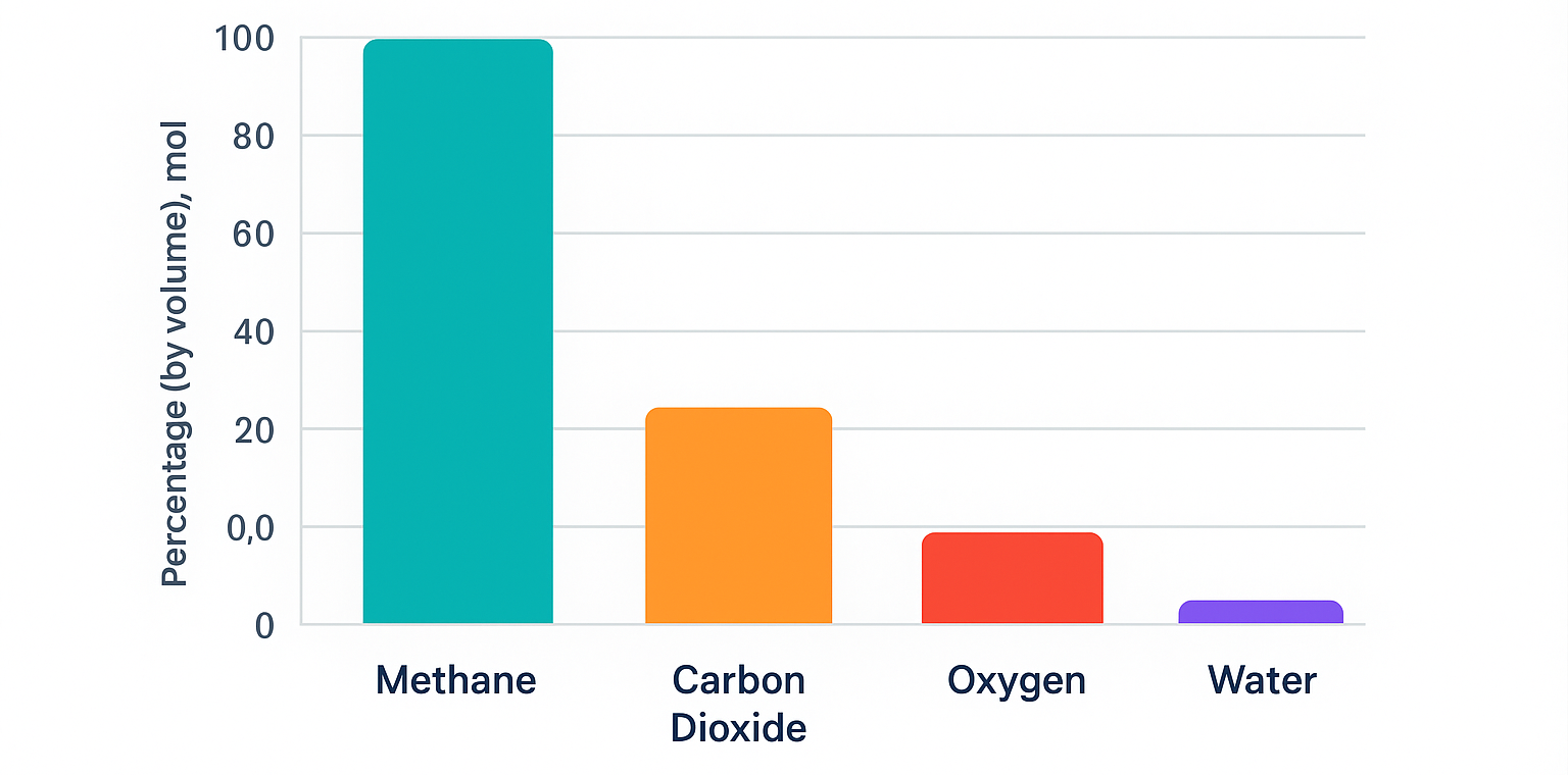Biogas is purified (H₂S, CO₂, moisture removal) to increase methane concentration above 90%.
