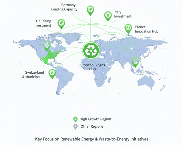 Across Europe, biogas is used for **grid injection**, **electricity generation**, **district heating**, and **transportation fuel**. Countries provide strong policy frameworks, education programs, and technology support to accelerate renewable gas adoption.